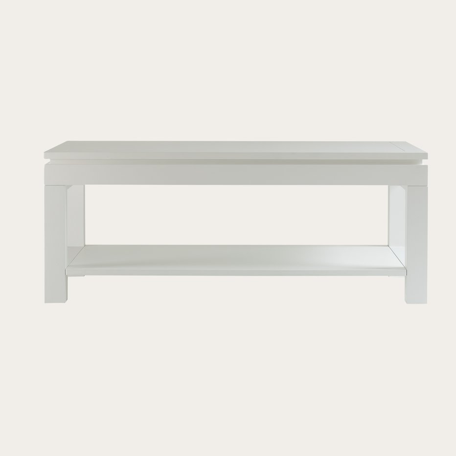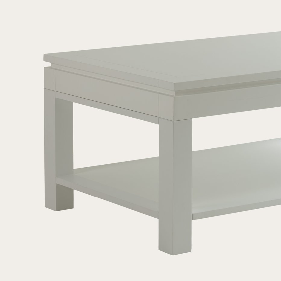 - De witte houten Liland salontafel met hefblad is een must-have in de woonkamer van alle liefhebbers van de minimalistische stijl. Onder het praktische hefblad, met behulp van een hefmechanisme, vinden we een ruime verborgen opbergruimte die het hele oppervlak van de tafel beslaat. Bovendien is er een onderste plank waarop je je decoratieve accessoires kunt plaatsen, waardoor de grote functionaliteit van de tafel wordt benadrukt.