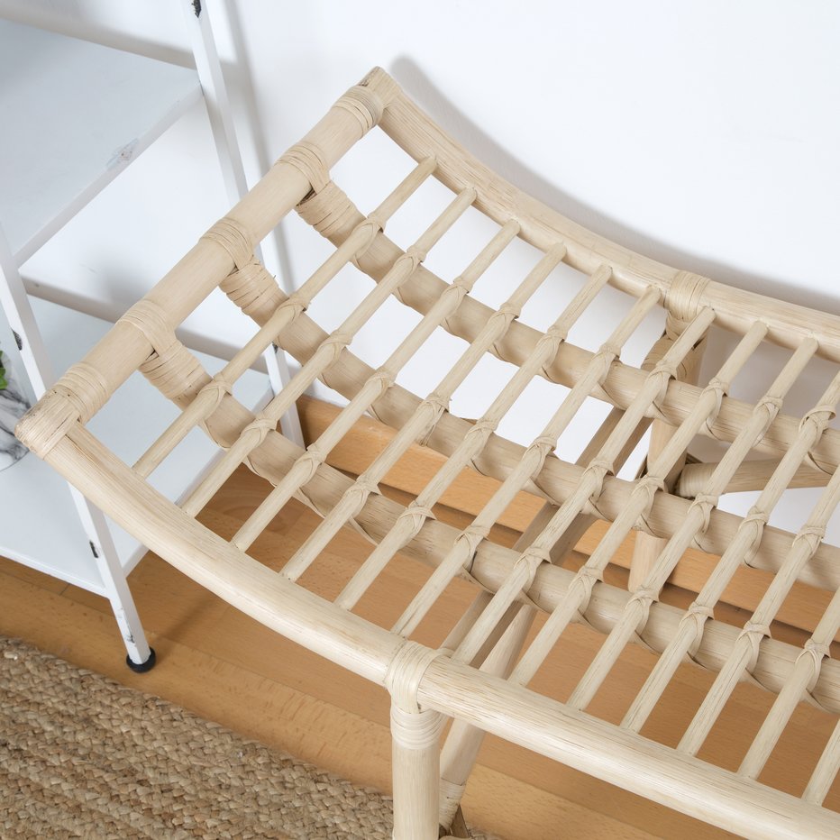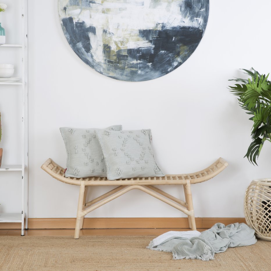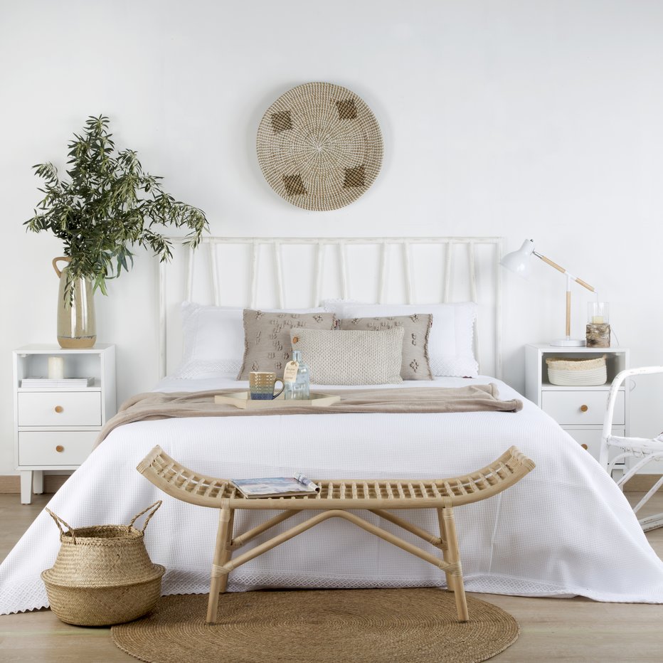 - La descalzadora Túnez de ratán natural es la pieza idónea para decorar el pie de cama si eres una amante del estilo japo. Realizada integramente en ratán transmite todo el encanto del estilo japonés, el cual transmite armonía y relajación, las sensaciones que por antonomasia buscamos para nuestro dormitorio. Fíjate en el bonito entramado de ratán que conforman su base. También disponible en blanco, esta descalzadora también podrá hacer las veces de banco en diferentes estancias de tu hogar, como por ejemplo en el recibidor o en en salón.