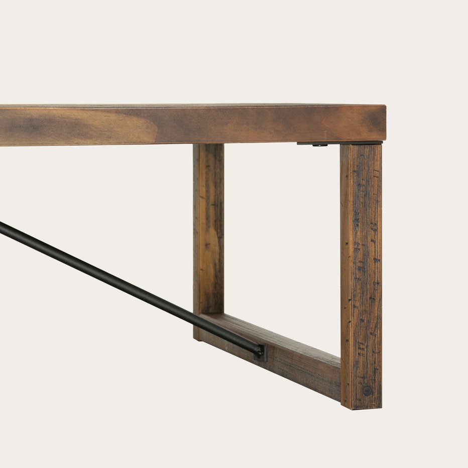 ZENGA SALONTAFEL VAN MASSIEF ARAUCARIAHOUT EN METAAL